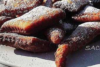 Bugnes lyonnaises Recette très facile Préparation : 20 mn env Repos : 4 heures Cuisson : quelques mn Il faut : 500 g de farine 25 g de levure fraîche de boulanger 100 g de beurre 125 g de sucre 4 oeufs 10 cl de fleurs d'oranger sucre glace pour la présentation Préparation : Dans une grande jatte , mélanger la farine et la levure émiettée Ajouter ensuite le beurre ramolli , les oeufs , le sucre , sel et fleur d'oranger Pétrir , et mettre en boule dans un plat creux et la couvrir d'un torchon . Laisser reposer 4 heures , la pâte doit doubler de volume Fariner le plan de travail et abaisser la pâte sur 5 mn La découper à la roulette , puis jeter les portions de pâte découpées dans l'huile de friture bouillante Retirer dès les bugnes lorsqu'elles sont dorées Déposer sur du papier absorbant , puis sur le plat de service et les saupoudrer de sucre de glace avant de servir Source : le site 750 g .com