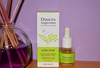 (vous remarquerez les essais artistiques...digne du grand Karl. Oui bon de Charles, si vous voulez..) Cette gentille vendeuse (que je remercie chaleureusement) n'a pas essayé de me vendre 50 produits en 5 min montre en main. Elle a pris le temps et m'a simplement expliqué que ma petite peau faisait peut-être un rejet suite à de trop nombreux changements de routine beauté. . Du coup elle m'a conseillé de me tourner vers une routine plus soft et surtout ne pas changer au bout de deux semaines. Elle m'a conseillé 2 produits : le démaquillant Fantômette de Douces Angevines dont je vous ai parlé ici, et le fluide Aube d'Eté de la même marque pour peaux normales à mixtes. Un peu dubitative, (le produit est composé d'huiles végétales), elle m'a rassurée en me disant que ça allait réguler ma petite peau et qu'elle sera de nouveau zen et éclatante. Je l'ai écouté comme une fille très sage que je suis. En me démaquillant le soir avec Fantômette et en terminant le démaquillage avec de l'eau florale et une petite crème légère pour le soir (il est à noter que le soir, il m'est impossible de mettre les fluides de Douces Angevines, mon homme est doté d'un Nez avec un grand N et aurait pu je pense travailler chez Guerlain. Oui, j'ai essayé avec un échantillon que la vendeuse m'a donné et j'ai récolté un "Ca pue ton truc, c'est une horreur ! ". Super. Comme je suis pour la paix des ménages et qu'on a pas encore la vie sexuelle de Grande Tata Suzanne (quoique, des fois je me demande si elle, bref...), j'ai renoncé. Par contre, le matin, juste un passage d'eau très froide, un peu d'eau florale sur un coton et 2 gouttes du fluide Aube d'Eté. Et bien, je peux vous assurer que je n'ai pas été déçue du résultat. Fini les boutons, pas besoin forcément de fond de teint (vraiment idéal pendant les beaux jours). J'ai même racheté les 2 produits même si j'ai entretemps changé de crème de jour (oui je suis incorrigible) mais je garde en réserve le fluide pour faire une cure de temps en temps. En tout cas, je me suis renseignée sur la marque : aucune cochonnerie dans la compo, top clean ! Pour résumer : belle peau assurée, saine, fraîche et éclatante !!! Et vous ? Vous connaissez déjà cette marque ? Qu'en pensez -vous ?