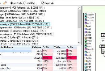 Notez que ces statistiques peuvent s'appliquer à un seul dossier ou un disque réseau, au lieu d'une partition complète, ce qui peut arranger des webmestres pour leurs copies locales. Il s'agit d'un véritable outil d'audit, qui peut également convenir pour une utilisation plus ponctuelle de diagnostic de l'espace consommé, suivant les types de fichiers, ou des comparaisons.