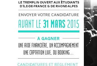 Modalités d'inscriptionLe concours est exclusivement destiné aux étudiants, ou aux groupes composés à 50 % d'étudiants, inscrits dans un établissement d'enseignement supérieur d'Ile-de-France ou de la région Rhône-Alpes, quel que soit le diplôme préparé (classe prépa, BTS, IUT, université, école...).