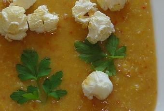Passez le sachet de maïs à pop·com pendant 2 à 3 min au four à micro-ondes, à pleine puissance. Répartissez la soupe dans des bols, saupoudrez de paprika, répartissez quelques pop-corn et servez le reste à part