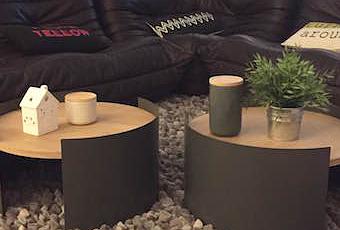 Je vous laisse découvrir mon nouveau salon et mes adorables tables basses !