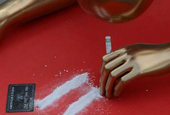 Comme l’année dernière, le street artist attaque une nouvelle fois la cérémonie des Oscars pour dénoncer les ravages de la drogue dans l’industrie du cinéma. Pour cette édition 2015 qui aura lieu dimanche, Plastic Jesus a donc installé une réplique géante de la célèbre statuette en train de sniffer vous savez quoi sur Hollywood Boulevard. On peut lire sur une plaque « Hollywood’s best party » (Meilleure fête de Hollywood).