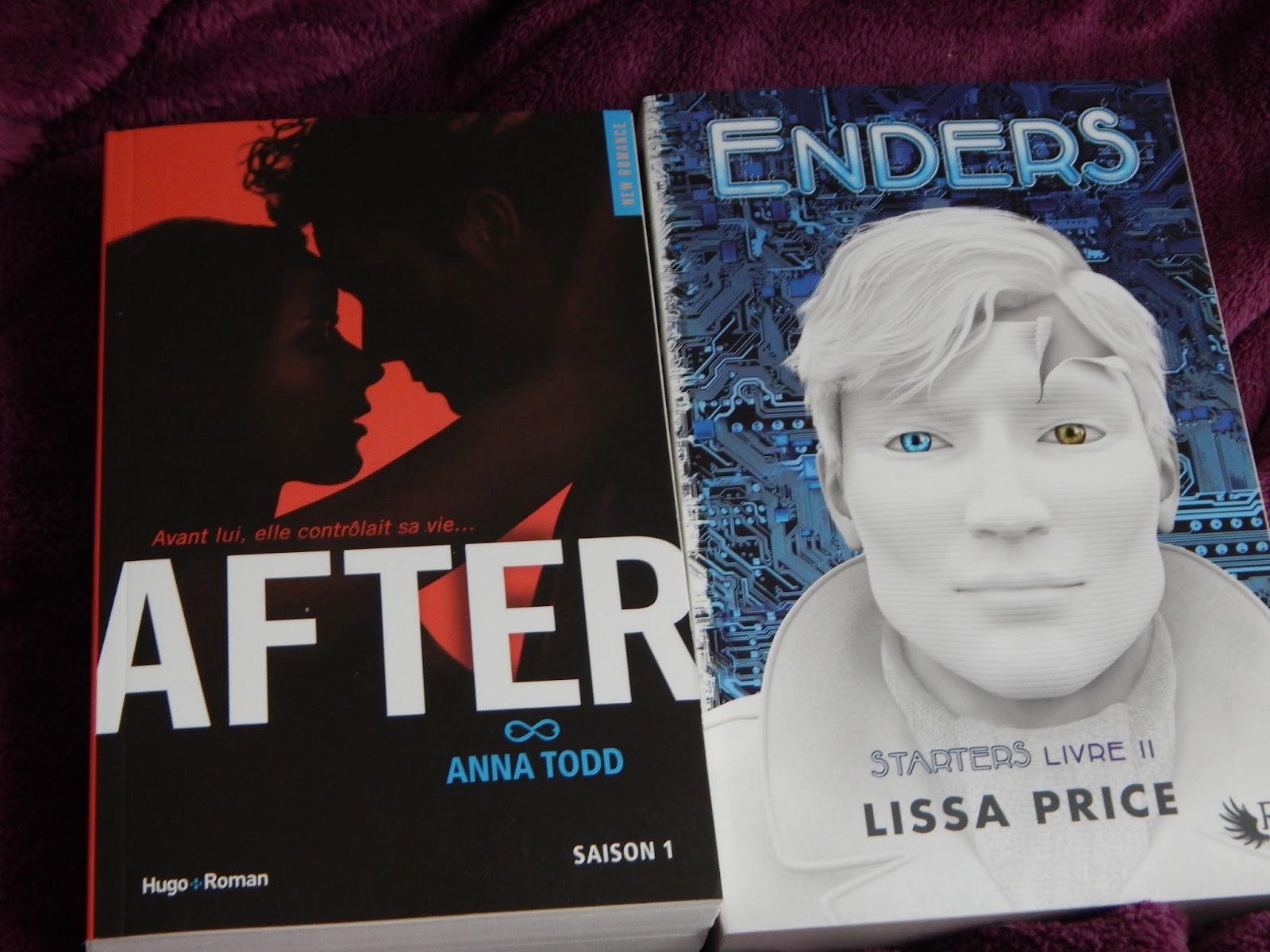 Starters, tome 2 : Enders de Lissa PriceAfter, intégrale, saison 1 de Anna Todd Lola et le garçon d'à côté de Stephanie PerkinsNos faces cachées de Amy Harmon Seuls contre tous de Lucy Connors#Bleue de Florence Hinckel Petits secrets et grand mariage de Louise Allen Ale 2100, tome 1 de Sophie G. WinnerLes secrets de Wisteria, tome 1 de Elizabeth Chandler Les secrets de Wisteria, tome 2 de Elizabeth Chandler La fille qui ne croyait pas aux miracles de Wendy Wunder [Relecture]Gallagher Academy, tome 1 : Espionne malgré moi de Ally CarterLa fiancée de Pompéi de Annie JaySortilège de Alex Flinn [Relecture]Felicity Atcock, tome 1 : Les anges mordent aussi de Sophie JomainCinquante nuisances d'Earl Grey de Fanny Merkin et Andrew Shaffer Le jour où j'ai rencontré Cupidon... de Suzanne Selfors Ce qui me fait un totale de 17 livres et 9 mangas.Merci à tous ceux qui ont pensé à moi.Pleins de bisous et bonne fin de journée.