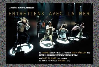 Entretiens avec la mer : rattrapage possible pour ceux qui ont raté les dates de la création en novembre dernier. Quelques reprises en vue, à la vaillante Friche de Viry-Châtillon (91) le 18 mars et au Théâtre de Bagneux (92) les 20 et 21 mars 2015.