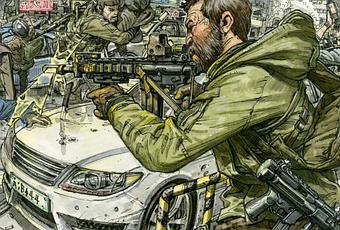 La couleur est faite au pinceau, dans des tonalités militaires, façon camouflage, qui correspond bien à l'ambiance et au thème de cette histoire.