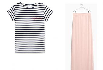 Marinière Maison la biche, jupe longue MANGO, Robe Hastuce DES PETITS HAUTS (d'ailleurs, je crois que je vais, une fois de plus, dévaliser cette nouvelle collection !), Maillot Jane d'Albertini (dont on sait déjà qu'il sera reconduit cet été),foulard rose DES PETITS HAUTS, Escarpins MOJITO de Patricia Blanchet (pour lesquels j'ai déjà craqué - un look est d'ailleurs déjà programmé ;)