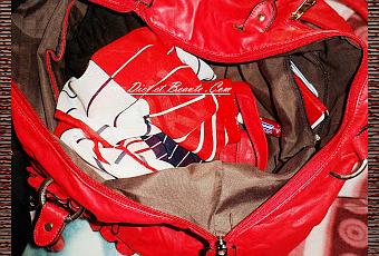 Comme vous voyez : Un Sac Rouge, Un Foulard Rouge , Le Labello Fruity Shine Rouge et Mon Iphone Blanc dans un cache Rouge