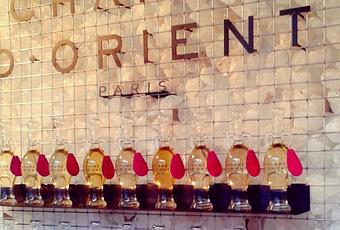 On y découvre un véritable mur fait de Cristaux d’Alun avec des amphores, flacons iconiques de la marque.