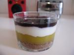 Inutile de dire que je la laissais bien volontiers se charger de la préparation des repas : pancakes au petit-déjeuner, salade de chèvre chaud,… Elle avait d’autant plus de mérite qu’en fait de cuisine équipée, nous ne disposions que d’un mini-four et d’une plaque électrique version camping. Le restaurant universitaire a vite perdu son attrait à mes yeux. L’une de ses spécialités : « La jeune fille voilée » . A l’origine, c’est une recette de gâteau que j’ai adapté au format verrine pour un dessert pas trop conséquent en fin de repas. Viel Spaβ !