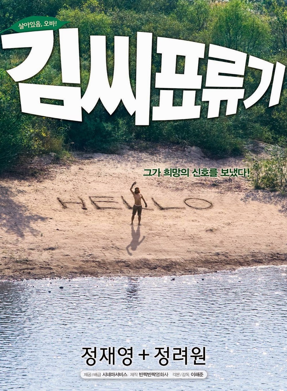 Tout commence par un homme sur un pont qui enjambe un fleuve. Il est au téléphone et on apprend qu’il croule sous les dettes. Il raccroche et se jette du haut du pont. Contre toute attente, il ne se joie pas mais se réveille échoué sur le sable d’une espèce d’ilot inhabité au milieu du fleuve. Comme il ne sait pas nager, impossible pour lui de quitter cet endroit qu’il va devoir apprivoiser tant bien que mal. Il lui faut trouver de quoi se nourrir par ses propres moyens et survivre avec ce que le fleuve apporte sur les rives de son île déserte. Sur la plage, il trace un « HELP » pour attirer l’attention. Le temps passant, il s’adapte à sa nouvelle condition, plutôt bien. Le « HELP » va devenir un « HELLO ».
