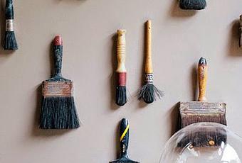 Pour les mettre en valeur il y a les fameux globes de mariées mais en jouant la carte de l'accumulation sur un mur, le résultat peut être très intéressant/Commençons par ce mur de pinceaux de peintres plats et ronds encore imprégnés de couleur