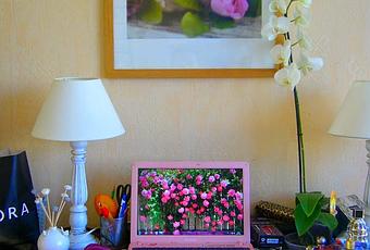 (mon bureau)Je me demande comment font les gens pour s'ennuyer chez eux, c'est quelque chose que je n'arrive pas à comprendre. Moi entre les cosmétiques, les spas à tester, les chiens à promener et Desperate et Sex and the city je ne vois pas vraiment le temps passer.
