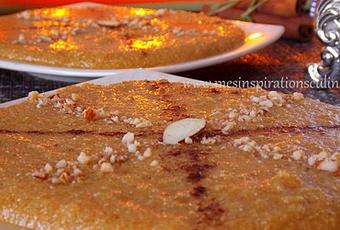 A l'occasion du Mouloud (Mawlid nabawi cherif) je vous poste la recette basique de Tamina ou Tammina appelée aussi taknatta. Un gâteau à base de semoule moyenne, miel et beurre. On peut parfumer d'eau de fleur d'oranger et garnir d'amande et cannelle.