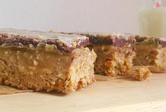 Verser le caramel sur le fond de flocons d'avoine et mettre le tout au frais jusqu'à ce que le caramel durcisse complètement
