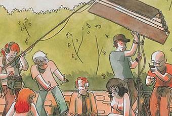 Quand Jean, alias John B. Root, célèbre réalisateur de films pour adultes, propose a son ami Olivier Milhaud d’interpréter le rôle d’un policier dans sa nouvelle production, ce dernier se montre d’abord hésitant. Bien sûr, il ne jouera que des scènes de comédie, mais quand même ! Après avoir obtenu le feu vert de sa compagne et de son éditeur, il finit par accepter et se retrouve immergé dans un univers dont il ne connait pas les codes.Mettons tout de suite les choses au point, il n’y a aucune image à caractère sexuel dans cet album. Quel intérêt de le lire alors ? me direz-vous, bande de coquins ! Et bien en ce qui me concerne et comme toujours, une curiosité intellectuelle sans limite qui me pousse à explorer des domaines auxquels je ne connais strictement rien. Ben oui, le porno et moi ça fait deux (j’en vois déjà qui rigolent au fond). Mon gros problème avec ce genre de film, c’est que les (très) rares fois où j’ai essayé d’en visionner, je n’ai jamais vu la fin. Bizarrement, je m’endors toujours à un moment donné et je ne m’explique pas ce coté soporifique (ok, j’ai conscience que l’excuse du sommeil pour justifier le fait de ne jamais aller au bout d’un porno ne va pas convaincre grand monde mais je tente quand même le coup…). Tout ça pour vous dire que je me suis plongé dans cet ouvrage avec un regard de sociologue, loin de tout voyeurisme, cela va de soi (et je vois toujours les mêmes qui rigolent au fond).