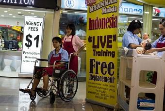 Le succès des grands centres commerciaux est sûrement dû à la variété de la marchandise exposée, mais cependant, à Singapour quelques agences de services ont pensé « d'exposer » des travailleuses domestiques immigrées d'autres pays. L'exercice s'appelle démonstration live ou live training.