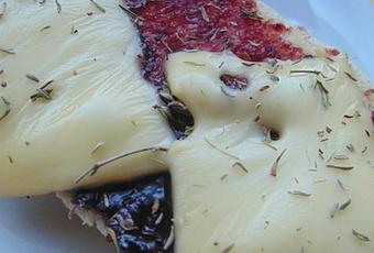 2) Recouvrir de morceaux d'emmental et parsemer de thym séché