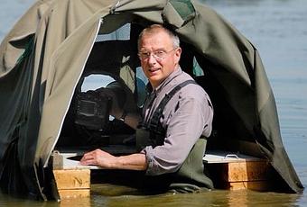Patrice Mariolan : La première c’est qu’il faut que le plan d’eau soit adapté, il ne faut pas qu’il y ait 2 mètres de fond sinon le matériel va rester, certes, sur l’affût flottant mais nous on sera sous l’eau. Donc ce n’est pas le but. Il faut que le plan d’eau soit adapté. Il faut aussi qu’on soit autorisé parce que très souvent les plans d’eau sont privés, donc il faut une autorisation pour y aller. Et c’est quand même une technique un peu éprouvante, surtout l’été. Parce qu’autant on peut se protéger du froid, il suffit de s’habiller, d’avoir des boissons chaudes dans l’affût flottant, mais la chaleur c’est très difficile. Quand il fait 40-45 dans l’affût flottant, on ne peut pas faire grand-chose.