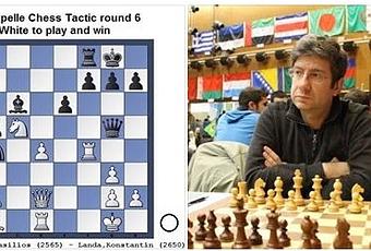 Un exercice de tactique : Lors de la ronde 5, Vasilios Kotronias avec les Blancs gagne contre Landa en un coup. Voyez-vous lequel ? Vos réponses sur notre page Facebook - Photo Chess & Strategy