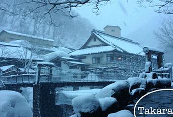 Bonjour à tous ! Le weekend dernier, nous nous sommes rendus au nord de Tokyo, dans un ryokan à Takaragawa réputé pour ses rotenburo, ou bains en plein air. Ce petit village perdu dans les montagnes se situe à 4h de train de la capitale (moins si vous prenez les trains express, plus dispendieux), et 30 min en bus de la station de ski de Minakami. Nous n’étions pas sûrs d’avoir de la neige, mais le blizzard soufflait lorsque nous sommes arrivés, épaississant le manteau neigeux déjà très conséquent.