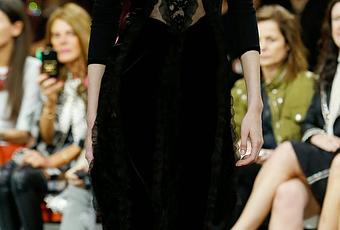 Un défilé pour célébrer 10 ans de créations chez Givenchy.Voilà ce que Riccardo Tisci a dévoilé à ses convives hier soir lors de son défilé automne/hiver pour la saison prochaine.Un défilé presque comme une collection couture qui retrace les pièces iconique du couturier et de la Maison Givenchy.Un style très Victorien aussi bien dans les broderies que dans les drapés des robes, les vestes aux accents péplum et comme toujours des croix, du gothique chic et of course des allusions au catholicisme avec des jupes imprimées de la Madonne ou de représentations biblique.Et que dire de ces bijoux de peaux très précieux qui comme des piercings viennent ajouter cette touche baroque qui complètent parfaitement les look du défilé.Riccado Tisci livre là une collection qui laisse toute l'assemblée en plein milieu d'un rêve éveillé.Et qui dit défilé anniversaire dit aussi front row 5 étoiles et amicale avec entre autre la bande Kardashian/West mais aussi Amanda Seyfried ou Katy Perry...