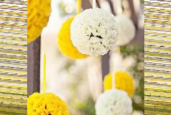 Utilisez des boules de roses jaunes et blanches pour vos décorations de cérémonie : baptême, communion, mariage…