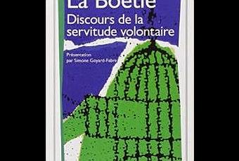 On ne sait pas si La Boétie (1530, 1563) avait 16 ou 18 ans lorsqu’il a écrit ce texte, du moins sa première version. En tout cas, plus de 500 ans ne lui ont pas fait perdre son actualité. En outre, tous les thèmes des Lumières sont là. Peut-être fut-il, à un temps ou la féodalité disparaît, le premier des modernes ? (LA BOETIE, Discours de la servitude volontaire, Garnier Flammarion, 1983.)La question que se pose La Boétie est celle de la « servitude ». Ce que l’on appelle aussi l’aliénation. Pourquoi faisons-nous le jeu de quelqu’un qui nous exploite ? Mais, surtout, pourquoi acceptons-nous de troquer notre « état naturel » de liberté contre l’esclavage ? Le plus surprenant est que la dite personne n’est pas un surhomme, mais ce qui se fait de plus vil. Et, plus encore, que sans nous, elle ne pourrait rien faire ! C’est nous qui commettons ses turpitudes ! Conclusion : ne faîtes rien, ses forces lui manqueront !
