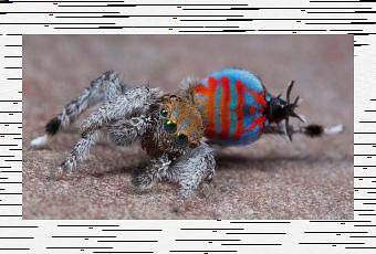 Vous êtes arachnophobes? Reconnaissez tout de même que ces araignées arborent de surprenantes couleurs! Aussi l’araignée paon a la faculté de sauter. Cela en est trop pour vous? ne vous inquietez pas, elles ne sont pas dangereuses pour l’homme.