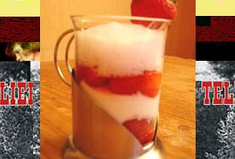 6/ Dans un verre transparent, disposer par couches successives des fraises, du fromage blanc, des fraises et finir par la mousse.