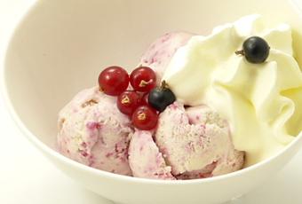 Monter à la sorbetière. Au dernier coup de rouage de la sorbetière ajouter quelques cuillèrées de coulis de fruits rouges.