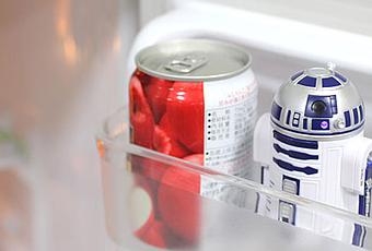 Après le chouette sac en feutrine fabriqué artisanalement, notre bon R2-D2 vient ici égailler notre triste frigo. Cette réplique du célèbre robot de la saga Star Wars est un compagnon de réfrigérateur équipé d’un capteur de lumière. Il émet des sons quand vous ouvrez la porte du réfrigérateur, tourne sa tête et fait clignoter ses voyants lumineux. Ce R2-D2 Talking Fridge Gadget est prévu pour le mois de mai 2015. 72$ sur Japan Trend shop.