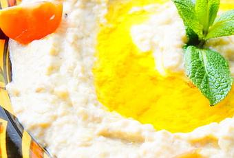 Ce met est à base d'aubergine préalablement grillée, préparée en purée, mélangée à du tahini (crème de sésame) et aux classiques ail, citron, huile d'olive, qui sont les ingrédients de base de la cuisine du Moyen-Orient.