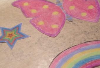 On a fait les dessins du plastique toute les deux, j'ai fait le papillon, le cœur et l'étoile et Lola a fait la chenille et l'arc-en-ciel. Au niveau de la transformation du plastique, une fois sorties du four les formes avaient rétréci et les couleurs étaient encore plus jolies!! Le tableau 3D a eu beaucoup de succès elle est super fière, quand elle a mit quatre coccinelles du même côté en disant "Papa, Maman, Mema et Lola" (trop chou j'adore!!)Elle a également fait le serpent et les deux toupies, avec lesquelles elle adore jouer et en a même donné une pour sa petite sœur.