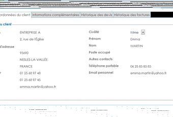 Nous allons créer un onglet pour le nom du client, puis l'adresse postale et enfin le numéro de téléphone et l'email, ce qui nous fera 3 onglets.