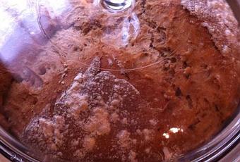 Placer la cocotte recouverte d'un chiffon propre dans un endroit chaud et laissez le pâton doubler de volume pendant une bonne heure ou plus.