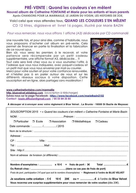 Lien vers le blog pour SOUSCRIPTION à télécharger pour le nouvel album de Catherine Fontaine et Marie "Quand les couleurs s'en mêlent"