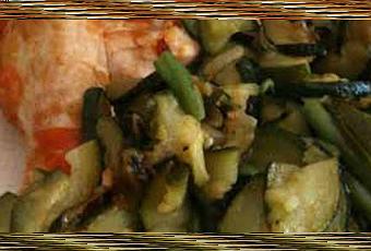 Dans une poêle mettre un peu d’huile d’olive ajouter l’ail, l’échalote et l’oignon, lorsque l’ensemble est bien fondu, ajouter les courgettes et laisser cuire une quinzaine de minutes, ajouter le nuoc-mâm . Saler légèrement, poivrer.
