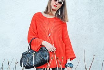 On va pouvoir revenir chez nous ! Notre appart est enfin habitable après plusieurs longs mois de travaux de rénovation, et de survie avec un minimum de vêtements et surtout pas de shopping pour ne pas se surcharger (et parfois sans internet....l'enfer !). J'ai donc recommencé doucement à acheter quelques pièces (ça fait un bien fou un peu de nouveauté) comme ce joli pull manches kimono de couleur orange sanguine bien flashy. Une couleur vitaminée que j'aime bien assortir à mon rouge à lèvre. Idéal pour la mi-saison.J'ai aussi déniché des bijoux marbrés noir et blanc chez H&M, ça faisait longtemps que j'en cherchais, et comme ce sont des lots, vous allez en revoir bientôt !J'espère que ce look shooté au Pays Basque vous inspirera. Je vous retrouve très vite pour un article sur la Dune du Pilat !xx Emilie