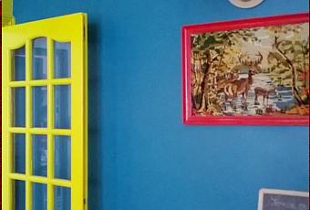 J'aime particulièrement les tapisseries en canevas de mémé revus et corrigés, encadrés de rouge... Une idée à garder. L'idée de bruncher à deux dans la baignoire est également très amusante ou dans la chambre romantique ? Vous avez le choix, chaque pièce a son identité. Vous pouvez ainsi investir toute la maison, rez-de-chaussée ou étage et vous poser pour prendre un thé, grignoter un gâteau ou bruncher. Prenez le temps de vivre et savourez !