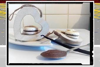 Garnissez vos macaron de crème de marron et décorez le dessus avec des traits de crème et copeaux de chocolat blanc et placez au frais 6 h