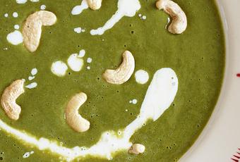 Velouté de cresson aux flocons de petit épeautre et à la purée de noix de cajou