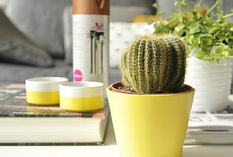 Alors ce matin je suis allée chez Castorama acheter une bombe de peinture "effet cuivre" parce que j'avais une idée derrière la tête. J'avais acheté chez ikea un cache-pot jaune dont je n'ai jamais été fan (c'est plutôt le prix qui m'a séduit que sa couleur).