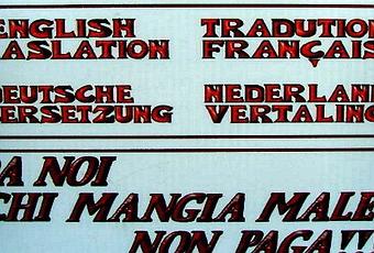 Le texte du panneau indique que si on mange mal, on ne paie pas... et si on écrit mal?
