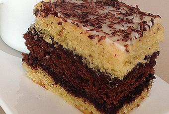 - Coupez le biscuit vanille en deux pour obtenir trois rectangles de la même taille (2 vanille et 1 chocolat) et montez dans cet ordre :