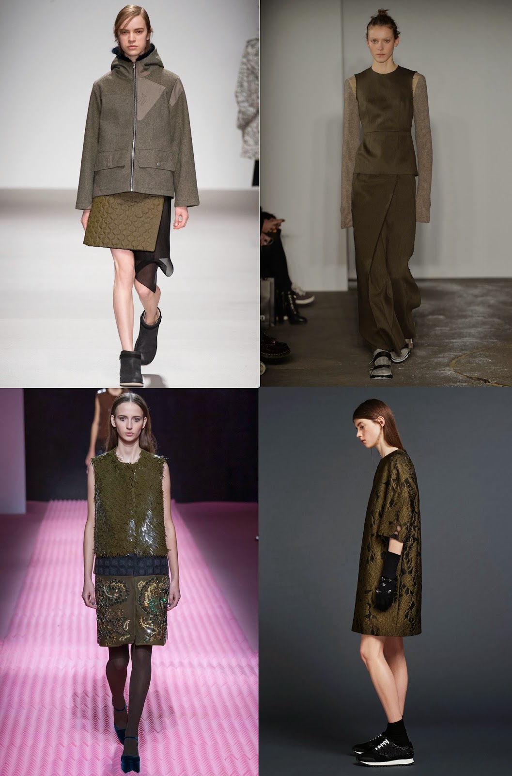 Kaki: Pour une allure minimaliste et stricteChristopher Raeburn, Joseph, Mary Katrantzou, Markus Lupfer