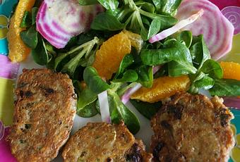 - Ajouter les deux élements sur la Mache posée sur des assiettes. Accompagner des Galettes de Kasha chaudes.