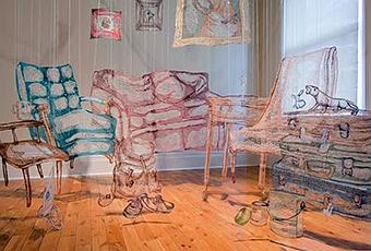 Living Room Title, Year: Living Room Detail, 2010-2011 Dimensions: 10' x 10' x 10' Medium/ Technique: Thread/ Machine Embroidery