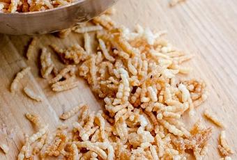 Quand le riz est bien sec, le faire frire quelques minutes, par petites quantités, dans une huile de friture à 180°. Cuire jusqu’à ce que les grains soient bien dorés.