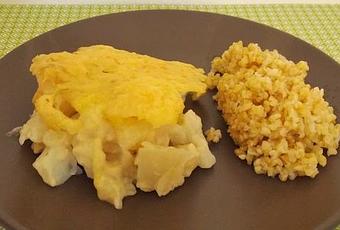 J'ai fait une sauce blanche au tahin bio, à la farine de riz complète bio et au lait de soja bio.